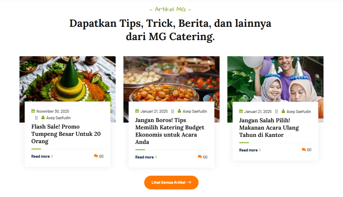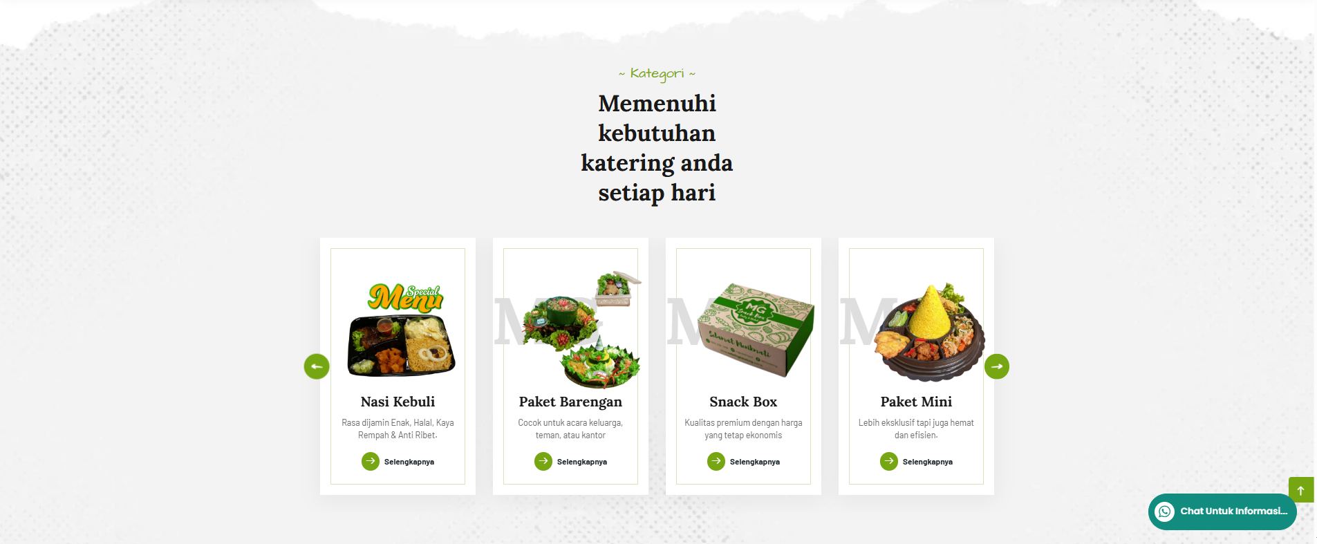 MG Catering adalah website bisnis jasa catering yang dikembangkan oleh Dagang Digital untuk membantu brand tampil lebih profesional dan mudah ditemukan secara online. Website ini dirancang sebagai media informasi sekaligus promosi digital agar calon pelanggan dapat mengenal layanan catering dengan cepat dan jelas.