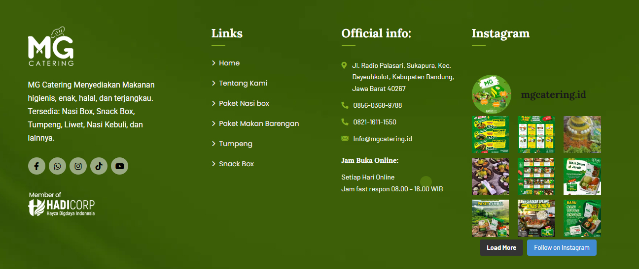 Website MG Catering menjadi salah satu contoh bagaimana sebuah website dapat membantu bisnis jasa tampil lebih profesional, terpercaya, dan siap bersaing di era digital. Dagang Digital menghadirkan website yang tidak hanya menarik secara visual, tetapi juga efektif untuk kebutuhan bisnis.